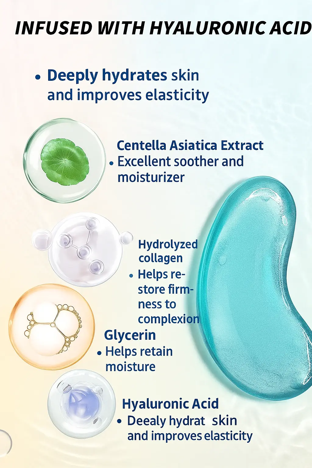 • Hyaluronic Eye Mask: Brightens under-eyes, reduces puffiness, locks in moisture, and smooths wrinkles.