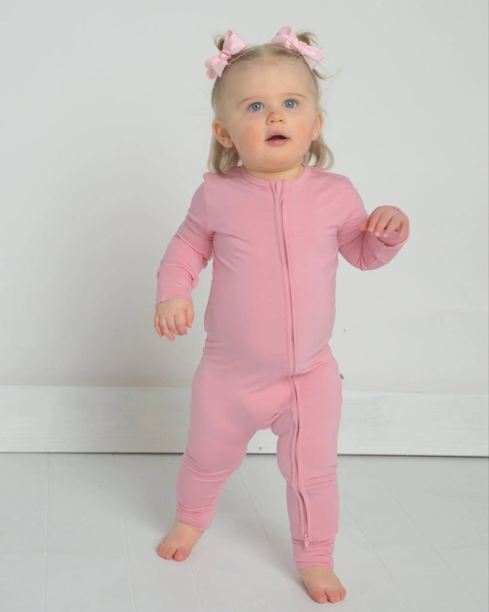 Let your toddlers bounce around in style with our Bubble Gum Bamboo Toddler Pajamas! Made of soft, sustainable bamboo material, these pajamas come in a playful bubble gum pink. The double zipper and fold over cuffs add convenience and versatility. Perfect for a good night's sleep or fun-filled days of playtime.